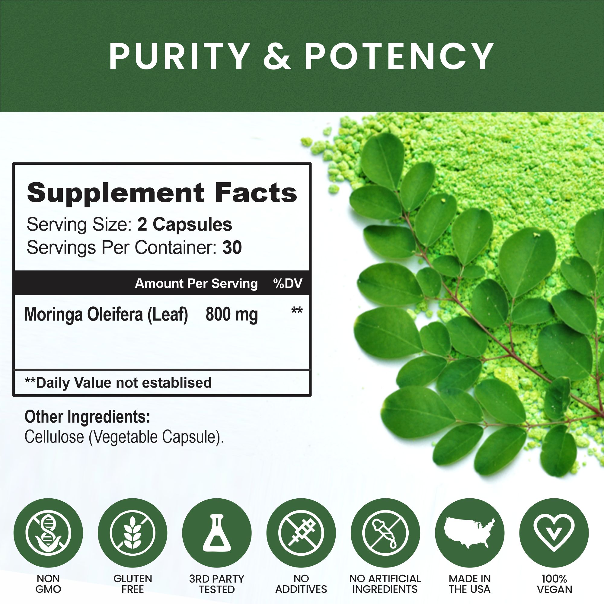 Moringa Capsules, 800mg Organic Moringa Oleifera